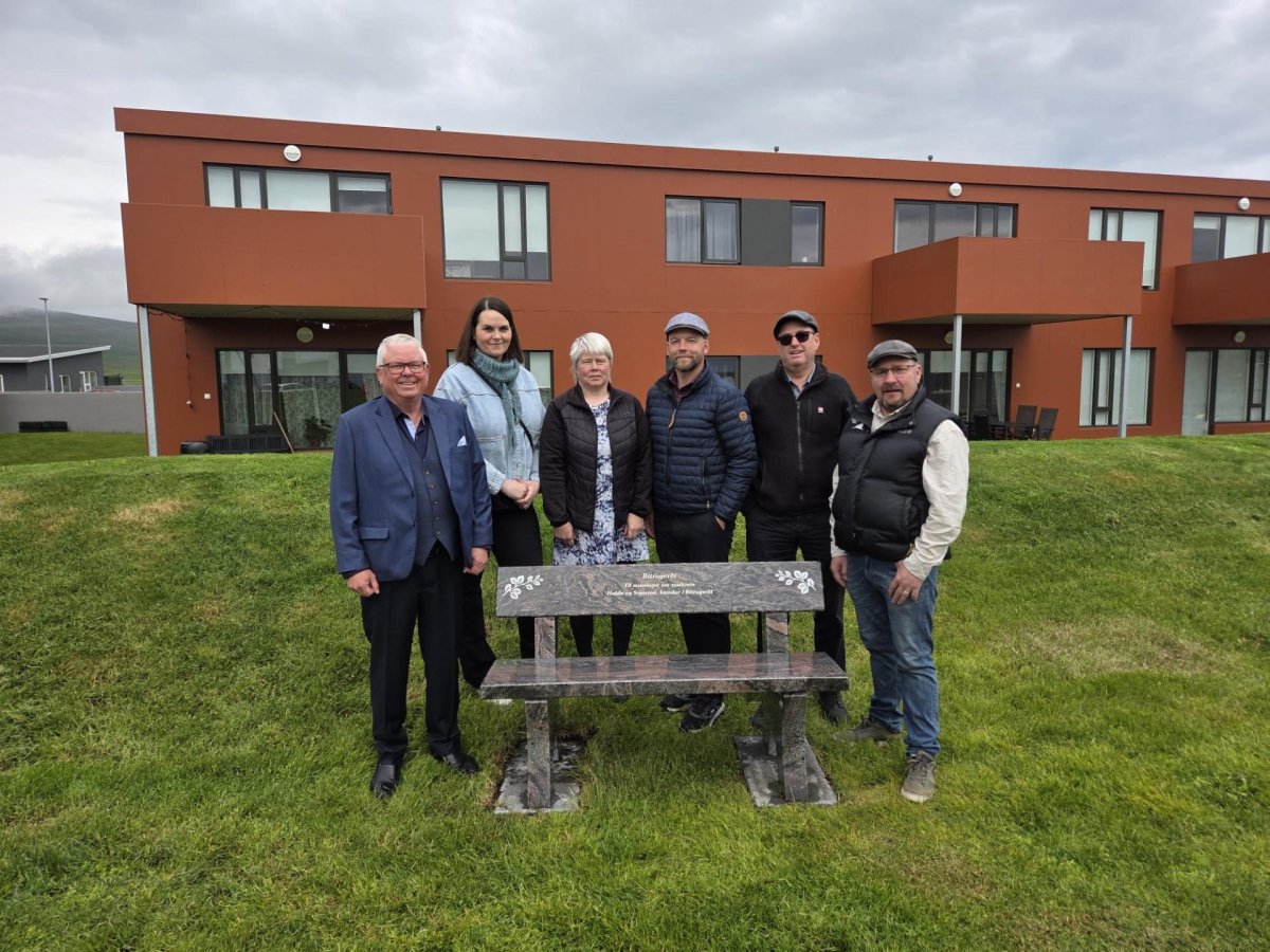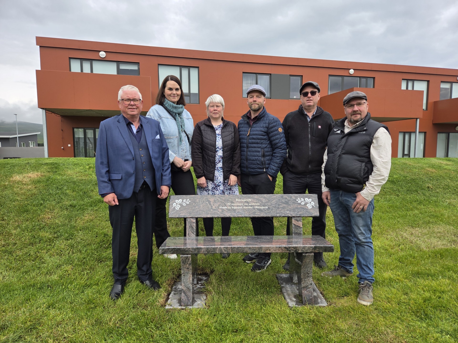 Minningar bekkur, frá visntri Snorri Finnlaugsson sveitarstjóri, Sunna María Jónasdóttir, Ásrún Árnadóttir, Axel Grettisson oddviti, Jónas Þór Jónasson og Jón Þór Benediktson