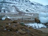 Þá eyðilagðist gamalt fjárhús í Mið-Samtúni í ofsaveðrinu á dögunum, sjá mynd hér þar sem sést að búið er að fergja hluta af brakinu úr húsinu og svo er önnur hér.