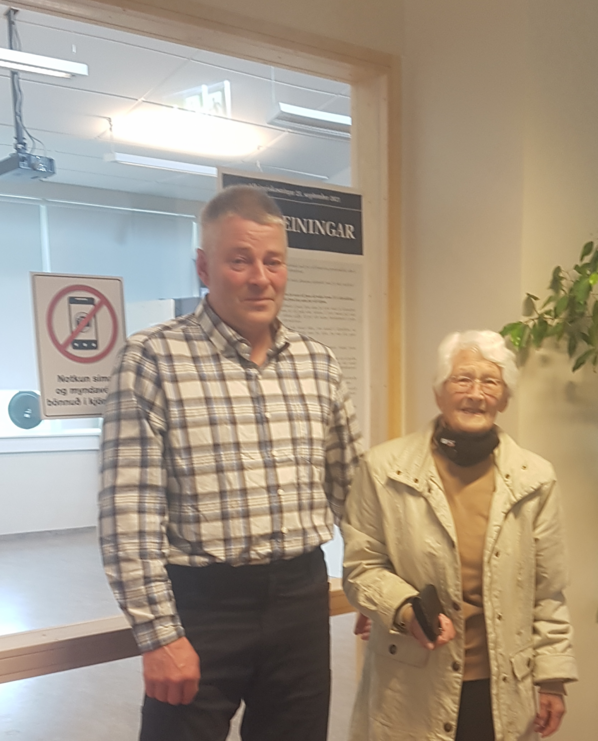Elsti íbúi Hörgársveitar Liesel Sigríður Malmquist með formanni kjörstjórnar, Helga Bjarna Steinssyn…