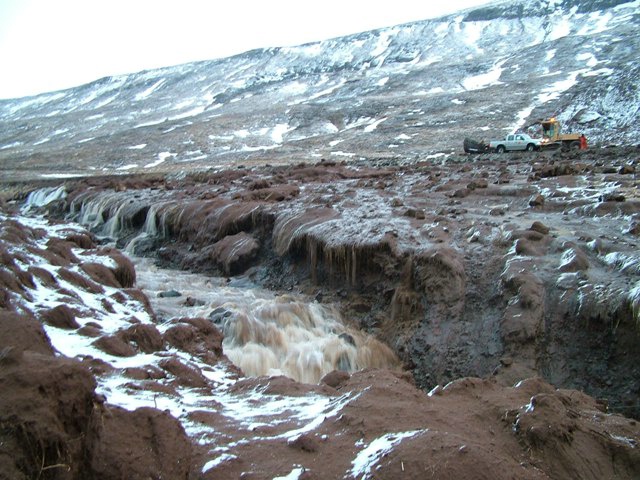 | Séð yfir þar sem vegurinn að Staðarbakka lokaðist |