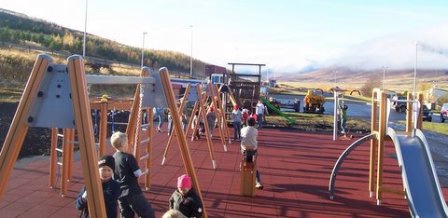 Þessa dagana er verið að leggja síðustu hönd á frágang kringum sparkvöll og ný leiktæki á skólalóð Þelamerkurskóla. Framkvæmdirnir hafa staðið yfir í frá því í júní og gjörbreyta aðstöðu til íþróttaiðkunar og hreyfingar nemenda, sbr. frétt á heimasíðu skólans, smella hér, um verkefnið Hreyfing, heilsa og hollusta. Það verkefni teygir anga sína víða í skólastarfinu en meginstarfsemi þess fer